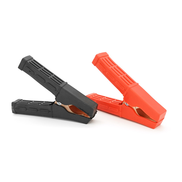 Набор аккумуляторных зажимов «крокодилы» Merlion черный + красный 100А 110мм (плотный резиновый, рифленный кожух),с медным покрытием, Пакет, Q2