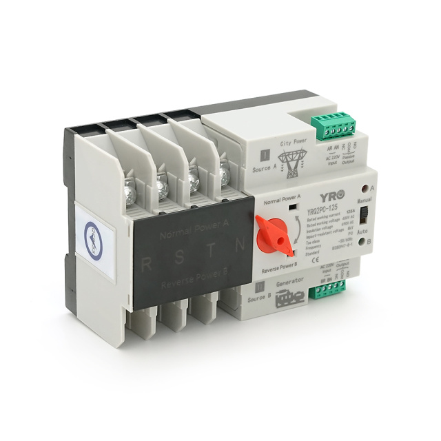 Автомат ввода резерва (АВР) четырехполюсный YRQ2PC-125, 400V/125A на DIN-рейку для генераторов