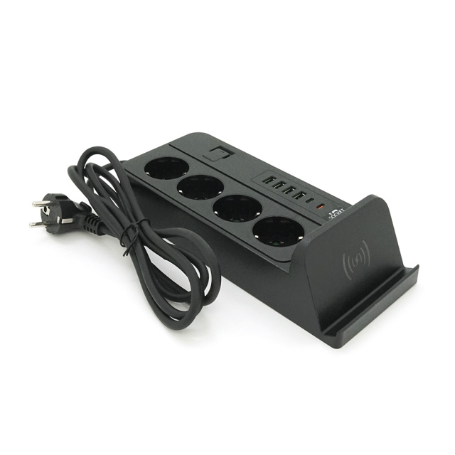 Сетевой фильтр с защитой от перенапряжения G12, 4 розетки + 4 USB 3.2A + 2 Type-C + беспроводная зарядка, 2 м, Black, Box