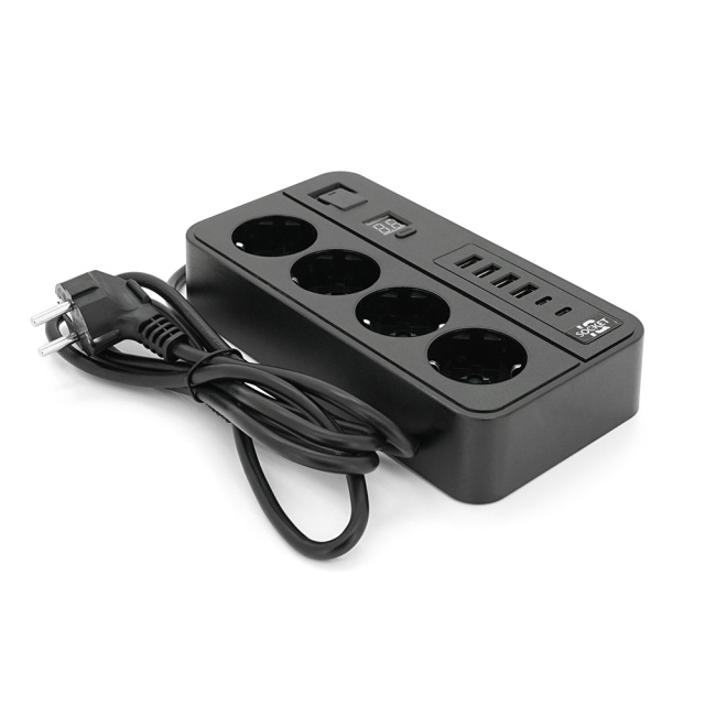 Сетевой фильтр с защитой от перенапряжения G13H, 3000W, 4 Socket + 4 USB 3,2А + 2 Type-C + таймер, 2м, Black, Box