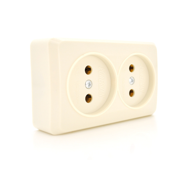 Розетка двойная без заземления наружного монтажа, белая, Q24