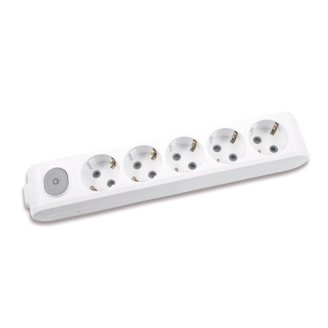 Колодка Panasonic X-tendia с заземлением 5 гнезд, с защитными шторками, с выключателем, серая