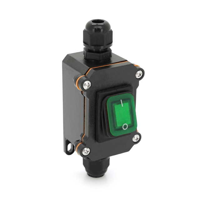 Выключатель наружного монтажа, зеленая кнопка с подсветкой, двухсторонний вывод, IP65, AC:110-250V, 20A, Black