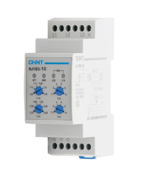 Реле контроля фаз CHINT NJYB3-12 AC220V, 3F4P, Защита U+ (0,1~1,3) *Us/U- (0,7~0,95) *Us, Задержка 0,1~10с, 1CO+1NO