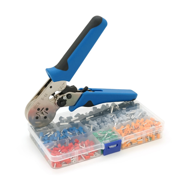 Кримпер HCS8 6-4A для обжима кабельного наконечника, Black-blue, набор кабельных наконечников (VE0508,VE7508,VE1008,VE1508,VE2508,VE4009,VE6102)