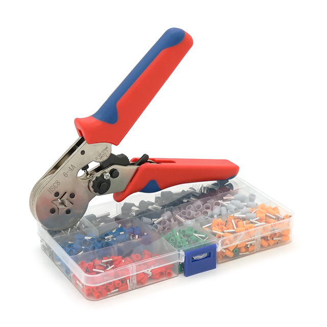 Кримпер HCS8 6-4A для обжима кабельного наконечника, red-blue + набор кабельных наконечников (VE0508,VE7508,VE1008,VE1508,VE2508,VE4009,VE6102)