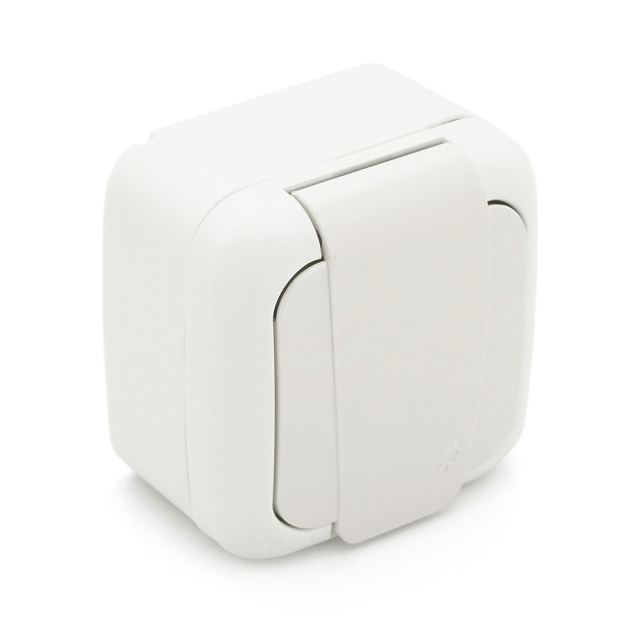 Розетка одинарная ViKO Palmiye с заземления, с защитными шторками, наружного монтажа с крышкой, P54, АС: 110-250, 16A White