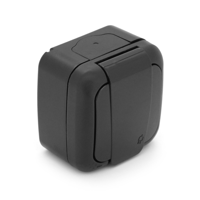 Розетка одинарная ViKO Palmiye с заземления, с защитными шторками, наружного монтажа с крышкой, P54, АС: 110-250, 16A Black