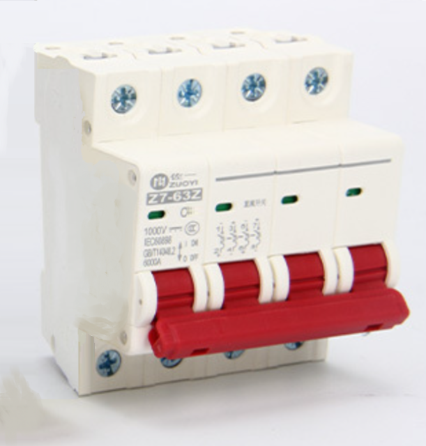 Автоматический выключатель постоянного тока ZUOYI Z7-63Z 4P C50 DC250-1000V, 50A, 6kA, DIN, 80*70.8*44.8mm