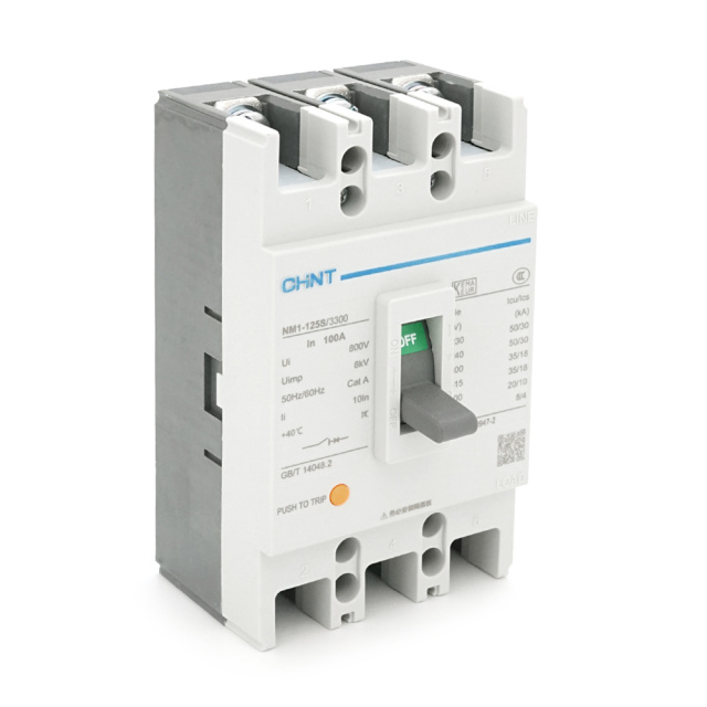 Автоматический выключатель переменного тока CHINT NM1-125S/3300-100А 3P, 380 В. 100A. 8КА/400В; 10КА/800В. 155*90*68mm