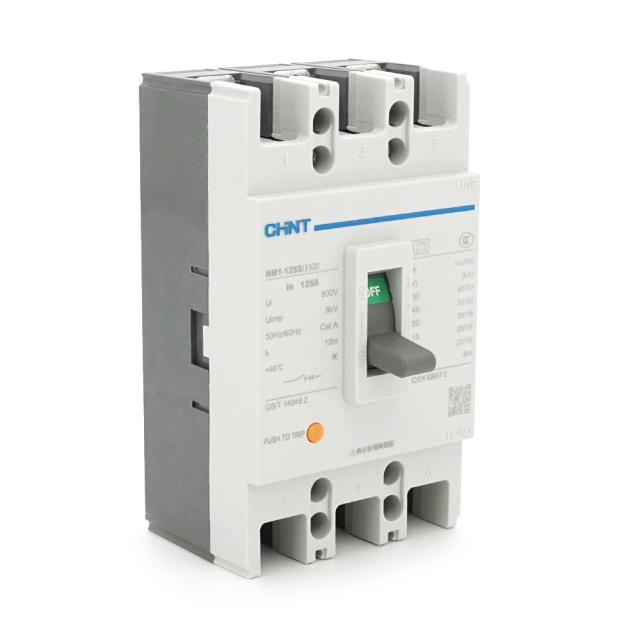 Автоматический выключатель переменного тока CHINT NM1-125S/3300-125А 3P, 380 В. 125A. 8КА/400В; 10КА/800В. 155*90*68mm
