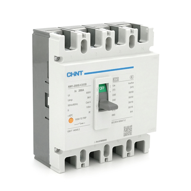 Автоматический выключатель переменного тока CHINT NM1-250S/4300-200А 4P, 380 В. 200A. 8КА/400В; 10КА/800В. 165*140*87mm