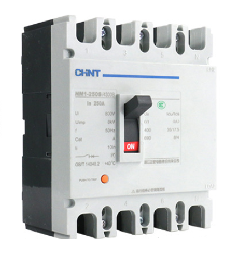 Автоматический выключатель переменного тока CHINT NM1-250S/4300-250А 4P, 380 В. 250A. 8КА/400В; 10КА/800В. 165*140*87mm