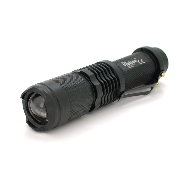Фонарь ручной Watton WT-086, 1LED Cree T6, 3W, 4 режима, ZOOM, 18650/2800mah, Black, IP44, СЗУ от USB, 115х28х22мм, BOX